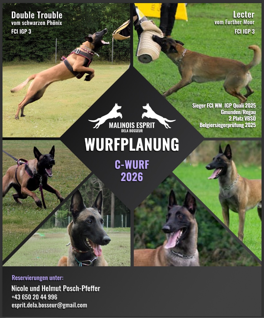Katharina Opris und Nala Spirit of Graz starten in Obedience OB1 bei der FMBB WM 2023 in Rumänien! Aus der Verpaarung Kaya Spirit of Graz - IGP3 x Baltimor Ingrando - IGP1Wir wünschen den Beiden viel Glück und Erfolg.